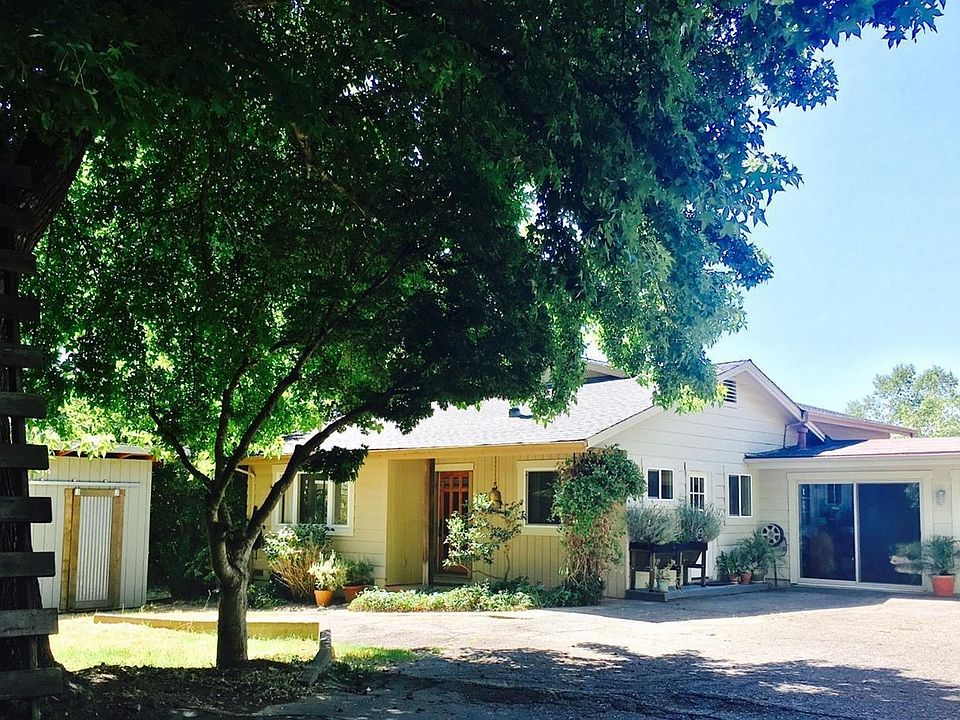 Quintessential Sebastopol. Country living not far from town. Sweet cottage on lush 2/3 acre with rich soil and all day sun. Majestic Cedar, Redwoods and Maples, fruit trees, mature plantings. Spacious kitchen has vintage enamel sink, quartz counters. Wood floors throughout. Concrete bathtub surround and counters. Natural gas fireplace. Separate art studio, outbuildings, potting shed, treehouse. Pasture, forest views. Just waiting to be finished.
