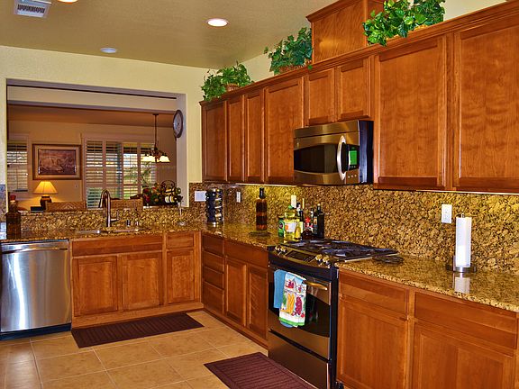 Bright and sunny, this 1,859 SF, 3 BR, 2 BA Sanders model is loaded with upgrades. Gourmet kitchen with sparkling granite counters and full back splash and large eat in area. Open to the living area with room for formal dining. Plantation shutters throughout and gorgeous hardwood flooring throughout home. Stunning covered patio with plenty of room to entertain in the tidy, low maintenance and private back yard. High-end refrigerator, washer and dryer are included. Come see for yourself.