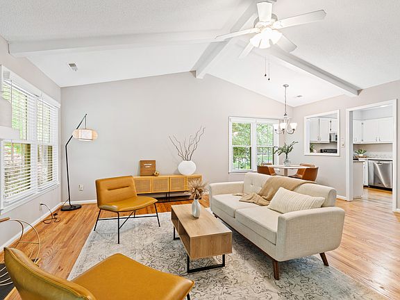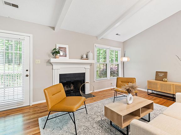 Your new home in the heart of Raleigh awaits! This charming end-unit townhome is in a prime location offering easy access to 440, 540, shopping, restaurants, and the bustling North Hills area. Step through the front door into a home designed for today, featuring recently installed hardwood floors (2020), an open floor plan, cathedral ceilings, a wood-burning fireplace, and an updated kitchen. The spacious, yet cozy atmosphere makes it perfect for entertaining family and friends, or getting cozy and relaxing after a hard day's work. The owner's bedroom provides a calm and serene environment to help you enjoy restful nights. The back deck offers unmatched privacy, while you look over a peaceful horse farm as you relax and feel connected to nature. Take advantage of the neighborhood amenities, including a pool and tennis courts, elevating your lifestyle experience to new heights. You won't find another home with this blend of comfort, convenience, and tranquility.