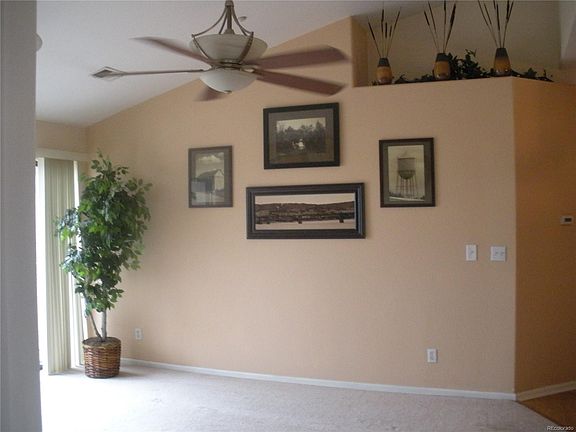 Don't wait to see this penthouse condo! Vaulted ceilings and the open floor plan give the unit a spacious feeling. Great room-mate layout with the huge master suite at one end and the second bedroom and bath at the other end, bedrooms being separated by the common living space. Both bedrooms have walk in closets. A gas fireplace graces the living room with a balcony for outdoor enjoyment. Pergo flooring in the entry, dining and kitchen areas. Newer Refrigerator, micro-hood, dishwasher in kitchen. Washer & Dryer included in the sale. Designer paint throughout. One reserved parking space (#154) with the unit. Access to all the Ken Caryl Ranch amenities.