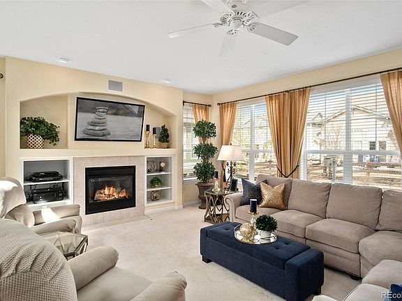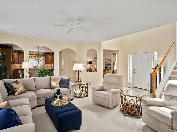 Stately Tallyn's Reach home is an entertainer's dream. Ideally situated in the award-winning Cherry Creek School District, this home boasts its original owners and thoughtful updates. Natural light and space abound throughout all 3 well-appointed levels of living space. Easily host family and friends from the open concept main floor. Expansive living room with surround sound and a cozy gas fireplace flows into the elegant formal dining room that is framed by a tray ceiling. Seamlessly transition to outdoor fun on the large patio via the Anderson French doors in the informal dining space that are accented by a gorgeous custom leaded transom window. Updated gourmet kitchen delights with upgraded 42" cabinets with under lighting, granite countertops, an island with seating, custom backsplash, expanded pantry & stainless steel appliances including a gas cooktop and double ovens. Laundry room doubles as a mudroom and leads to the attached 3-car finished garage that has custom cabinets and a workbench. Walk up the dramatic open staircase to the luxurious master retreat. Palatial master includes a bedroom with a vaulted cathedral ceiling and leaded glass accent windows, a sitting room, a walk-in closet & 5-piece bathroom. Upper level is completed by 3 bright secondary bedrooms that share a bath with double sinks. Finished basement is bright and sunny thanks to many egress windows and adds excellent additional living space. It includes a bedroom ideal for guests, a home gym with surround sound, bathroom & a large open concept bonus room with a fully-equipped wet bar & home theatre space with 7.1 surround sound. As an added bonus the home is 100% smoke and pet free! Lovely outdoor space has sprinkler and drip systems, new landscaping & a fenced backyard. Tucked away in a quiet neighborhood with great amenities and easy access to shopping, schools & E470 for easy commuting.