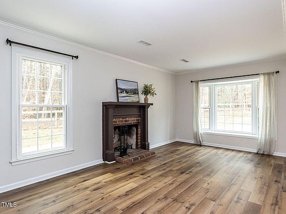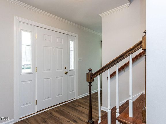 Inviting Colonial with Modern Updates and Private, Expansive Yard - A True Gem! Welcome to this beautifully updated colonial-style home, nestled in a peaceful and private location with expansive tree-lined views and a spacious front and backyard. Located in a highly sought-after area near Brier Creek, Leesville Road, and I-540, this home offers the perfect blend of tranquility and convenience. The home has been thoughtfully updated with warm LVP flooring throughout the main level, fresh paint, new carpet upstairs, and modern touches that make it truly shine. The inviting entrance features a newly painted teal front door and classic black shutters, setting the tone for the charm that awaits inside. Step into the spacious living area, where you'll find an attractive fireplace with a decorative brown trim and a brick mantle, creating a cozy focal point. The large bay window brings in plenty of natural light and offers a picturesque view of the lush backyard. The separate dining area, with its elegant chandelier, is perfect for hosting gatherings, while the updated kitchen is sure to impress. Featuring white cabinets, granite countertops, stainless steel appliances, and a window over the sink with a peaceful view of the backyard, it's a chef's dream. The breakfast area boasts double glass doors that open to the expansive yard, perfect for enjoying your morning coffee while overlooking the serene outdoor space. Upstairs, the primary suite offers a tranquil retreat with a walk-in closet, a double vanity, a walk-in shower, and a decorative window that adds charm. Two additional bedrooms share an updated hall bath, and all rooms upstairs have new, soft carpet. Outside, the private backyard is a standout feature, with a large fenced area ideal for pets, play, or simply enjoying nature. The neighborhood offers large lots and a wooded feel, yet you're just minutes from shopping, dining, and major routes like I-540 and Brier Creek. Don't miss this opportunity to own a beautifully updated home in one of the most desirable locations. Schedule a showing today!
