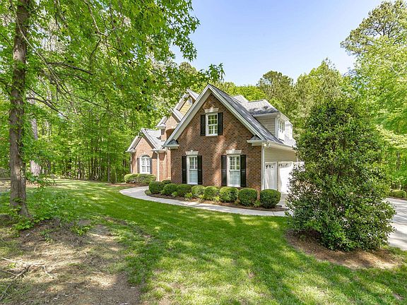 This stunning custom-built home sits on almost 3 acres of beautifully landscaped land in Wake Forest. You will be welcomed by a 2 story foyer leading you to a 2 story family room with cathedral ceilings, built in bookshelves, and a large wall of windows allowing plenty of natural light. On the main floor you'll also find the primary bedroom with a renovated master bath, a sun room, and a laundry room for added convenience. The second level features 3 additional bedrooms and a large bonus room. Off the kitchen is two tier deck with stairs leading down to a back yard large enough to fit a pool, making this a perfect home for entertaining. The garage accommodates 3 cars and an EV charging outlet with additional parking in the long circular driveway and parking pad. The home also includes a 2020 roof, new wider gutters for proper drainage, 2 well-maintained HVAC units, two 50-gallon water heaters, water softening filter, termite bond and a radon mitigation system. Conveniently close to shopping, dining and schools, this home offers a balance of privacy and accessibility.