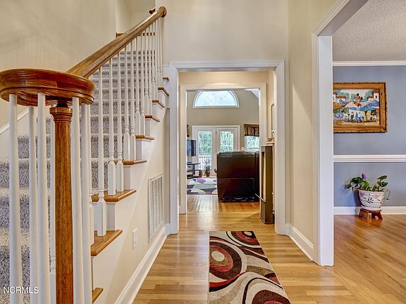 Delightful and welcoming with its rocking chair front porch, this classic traditional Cape is tucked away on a quiet cul de sac with wooded privacy in back. Its 11-room interior affords an easy flow with room to grow! The heart of the home is the lovely family room with fireplace that opens to an expansive deck with shade cover overlooking the fenced back yard. A cook's delight, the kitchen has granite countertops, generous cabinetry and is flanked by a formal dining room and sunny breakfast room. There are 2 main level bedrooms including a spacious master retreat with remodeled bath, while the versatile upstairs has 3 additional bedrooms, a home office and a huge unfinished room . The side load garage is oversized, has shelving for storage, and there is plenty of parking room in the extendeddriveway too. Bring the pups, as the back yard has new privacy fencing with gates wide enough to back a boat in, and there is a new walkway from the driveway to the deck. Other features include a new roof, new HVAC upstairs, hardwood floors, gas tankless water heater, security system, new carpet in the stairway and hall, and a meticulously kept landscape giving it stand-out curb appeal. Add in the sought after school district, beautiful community, low county taxes and easy proximity to shops & restaurants, it's a recipe for happiness and its character and setting is the antidote to the modern cookie cutter trend!