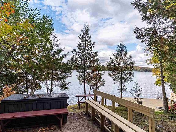 Lake Bonaparte private retreat is available this Fall! 7409 Bull Rock Point Rd is a double lot and includes 100 feet of waterfront (beautiful sunsets), new deck by the water, an amazing 1 bedroom, 1 bath cabin and so much more! Walking into the cottage from the back, you will enter the sun porch, with amazing views of the lake! The bedroom is spacious and has a wood burning fireplace adding to the charm. There is electric heat for those cool Fall nights. The kitchen is open to the living room and features rustic wooden beams and an amazing eating area. The wraparound porch behind the trees is a great place to stargaze at night! Call today, it may not be available when the snow flies!