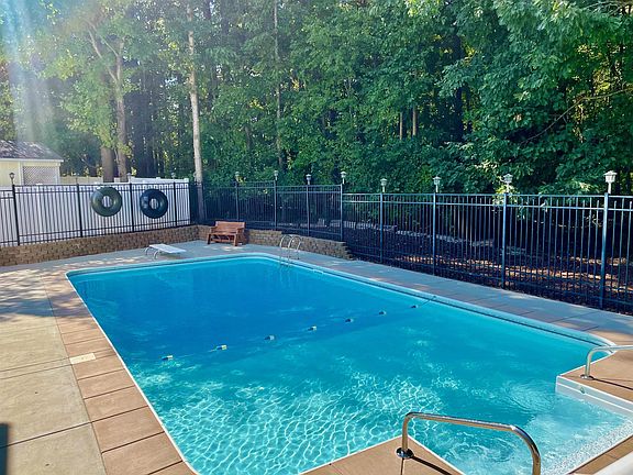 Welcome Home! Imagine being close to everything. This meticulously maintained home, located in a coveted North Raleigh location, is perfect for entertaining guests inside and out. Fresh paint throughout. Hardwood flooring in Entry, Kitchen, Dining Room, and all Bedrooms. The kitchen features new quartz countertops, stainless steel appliances, and a double oven (one being a convection oven). There are four bedrooms upstairs PLUS a bonus room. There is a tankless gas hot water heater. Roof and aluminum casing on vinyl windows have transferable LIFETIME warranty. The in-ground pool is 18x36 with a newer liner, and has a cover, pump and vacuum. The shed is wired and would make a great workshop. The garage was a two-car garage but one side has been converted into a home office with heat and air. Perfect for those who now work from home.