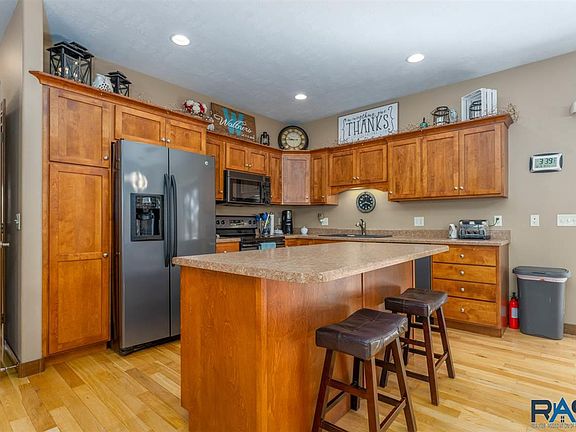 Come take a look at this 3 bedroom, 3 bath, heated 3-car garage home in SW Sioux Falls! This open concept on the main offers perfect entertaining, with 9 foot ceilings, a gas fireplace, Dakota cabinets, and beautiful hardwood floors. The master suite has a ¾ bath and ceramic tile flooring with a walk-in closet. Rounding out the main level are a secondary bedroom along with a main floor laundry! The lower level offers an open and spacious family room, a gas fireplace, recessed lighting and a huge bar area with under mount lighting! Don't forget about the awesome bathroom with a steam shower, separate two person whirlpool tub, tile flooring, and marbled walls. A third bedroom along with an office downstairs, is sure to fit your needs! Come see for yourself the covered front porch, covered back porch, 2nd tier deck, sprinkler system and nice yard!
