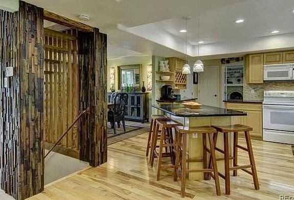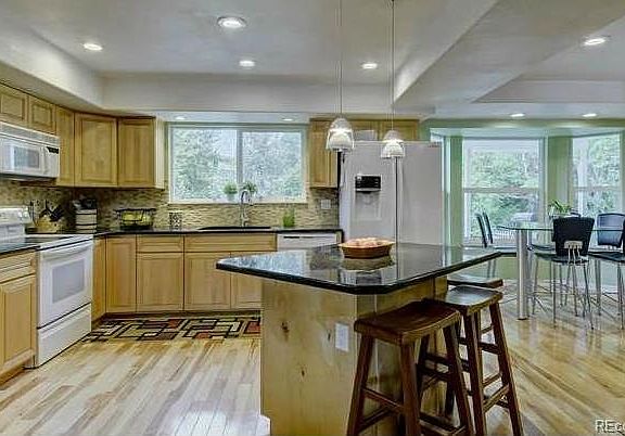 THIS IS A MUST SEE! Beautifully remodeled home in highly sought off Columbine Knolls. Everything has been redone and it shines, walls removed to have a more open floor plan, custom staircase, new hard wood floors, beautiful remodeled kitchen with granite, island, pantry, custom tile back splash, granite counters in bathrooms, large private back yard, newer interior and exterior paint, newer windows, newer roof, radon mitigation system already installed, AC, lots of storage, wonderful laundry/mud room with a sink, private living room with a wood burning fireplace, and so much more. All 4 bedrooms on the upper floor with one non-confirming in the basement. This home has it all and has already been completely remodeled for you to live and enjoy. Blocks to the parks and pools. Great location!