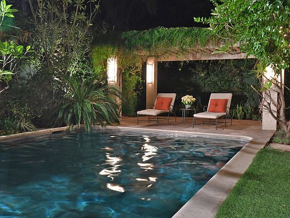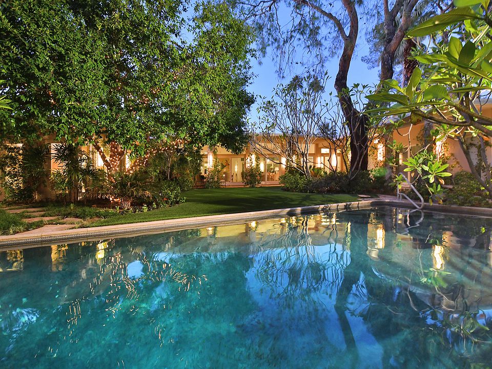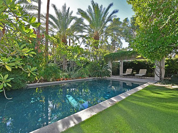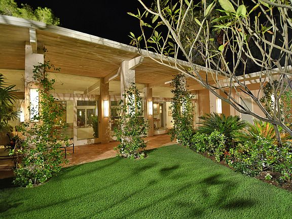 Palm trees sway gently beside the mature grapefruit trees surrounding this beautifully landscaped oasis while skylights, walls of sliding glass doors and clerestory windows bring the outdoors inside. Home of the late James MacArthur, icon of the original Hawaii Five-O television series, the flagrant plumeria blossoms and lush tropical foliage bring 'Danno's' beloved Hawaii to life, creating a shady refuge from the desert heat. Years of meticulous, top quality upgrades and improvements, both inside and out, have merged to create a home that is both classic, cozy and timeless.