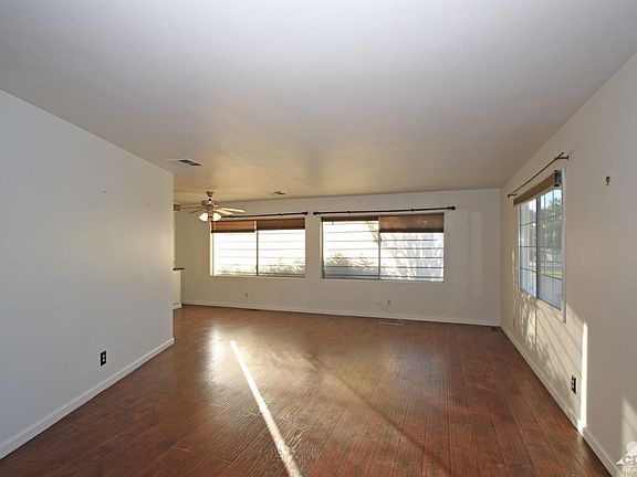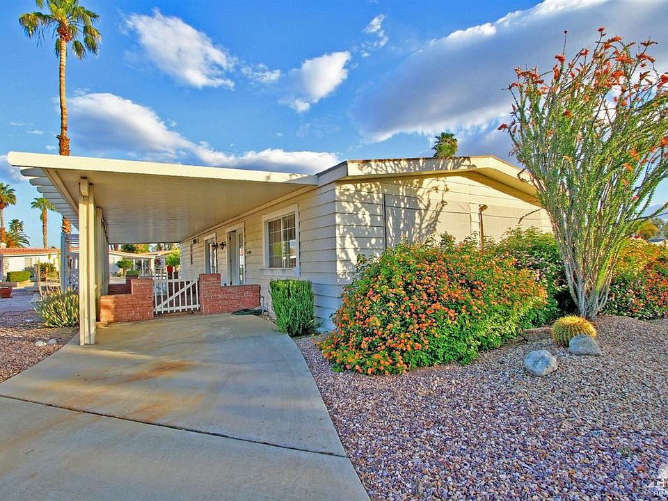 Corner lot, short walking distance to club house, this beautiful house has a large front yard, with a picket fence and a private rear patio. French doors lead to an updated and very well maintained interior. Laminate flooring, granite counters, updated kitchen and baths, plus a back patio. NOTE: Recent Home Inspection Report available. Portola Country Club is a 55+ community offering Free Golf, Free cable TV and Internet, Free Trash service, 3 community pools & spas, clubhouse, fitness center, cafe, permanent pickle ball and tennis courts, bocci ball and RV storage (+$40/mo). PLUS a Low HOA, ($335/mo) located near the center of Palm Desert in a Very Friendly Community with an active social/activity calendar.