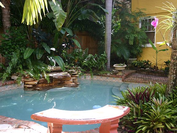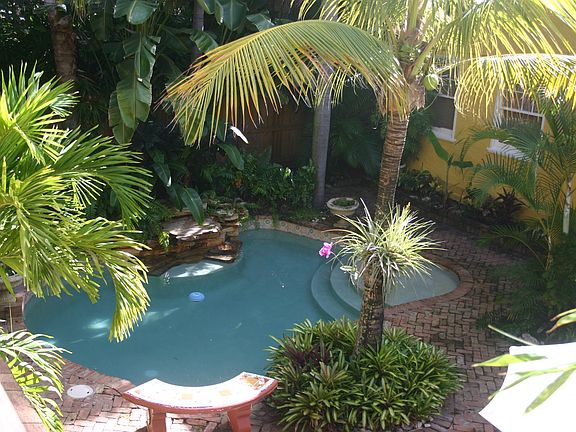 Kick back and enjoy the Florida lifestyle from the large deck overlooking lush landscaping, pool, and waterfall. One large master bedroom upstairs with walk-in closet, washer/dryer, and full bath with tub. Lots of storage! Downstairs features another bathroom with shower, kitchen, living/dining space. Wood and Spanish tile floors. Central AC. Walking distance to park, tennis courts, CityPlace, Intracoastal waterway. Close to I-95, Palm Beach International Airport, downtown. 1st, last, deposit. Tenant pays electric/cable, owner pays water/sewer.