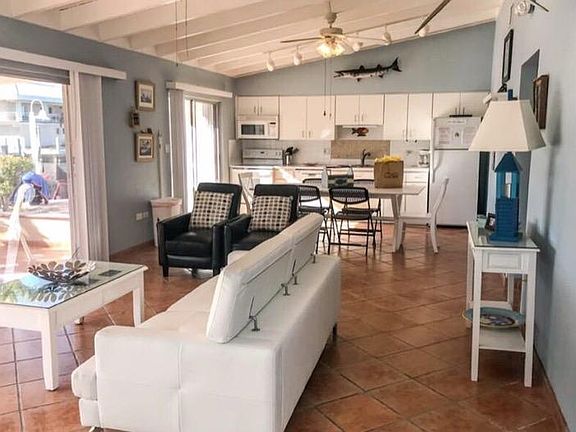 Motivated Seller! Great Open End of Canal location, half duplex with ''Wide Design'' and has rental history! Open Floor plan on Living area, High Ceilings, 2/2 with great view and dockage only a few lots from Open End of canal providing almost immediate access to both Ocean and Gulf through Vaca Cut. Seller has made many improvements in the home, new appliances 2018, Metal Roof in 2018. Don't miss this opportunity! Selling ''AS IS''.