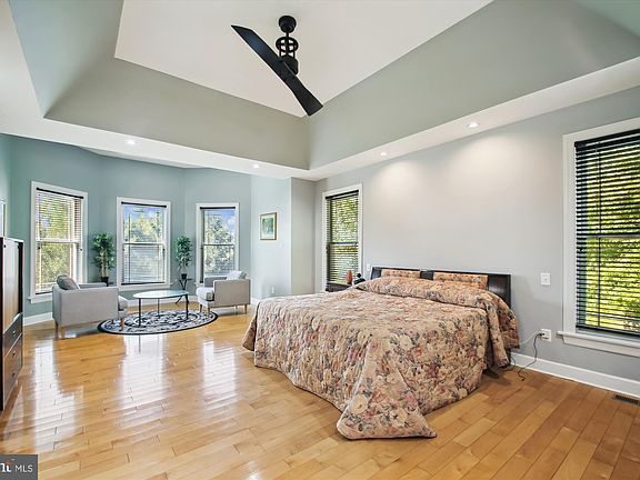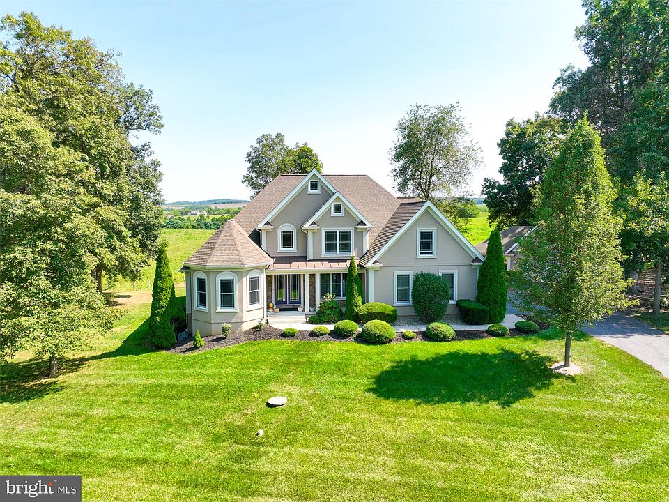 Executive Colonial with an open floorplan, soaring ceilings and beautiful maple wood floors. Situated on a private lot that sits off the road and backs to fields and distant views. The 2-story foyer welcomes you home. The living room has a vaulted ceiling with easy access to a huge deck & patio. The gourmet kitchen has stainless appliances (new wall oven), gas cooktop, tile floor and granite counters. The grand family room has a wall of windows, scenic views, breakfast area & wood burning fireplace. There is a large formal dining room. The first-floor primary bedroom features a tray ceiling, sitting room for that morning coffee, walk-in closet and primary bath with a large shower and over-sized whirlpool tub. The lower level provides you with an enormous rec room with bar, full bath and walk-out steps. In addition to the attached garage, there is a detached garage with a screened porch and finished room over the garage. Perfect for an office or exercise room.