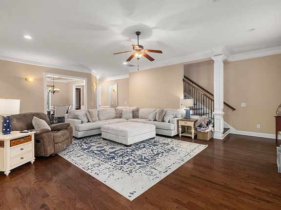 You will want to entertain everyone in this stunning 5 bedroom with wonderfully spacious rooms and 10 ft ceilings. Fabulous layout with main level primary bedroom featuring a sitting area and massive closet. Soaking tub and separate tiled shower with rain head faucet. Gourmet kitchen with a large amount of granite counter space plus butler pantry AND additional prep space in laundry area. Upstairs bedrooms are huge and have great storage. Bedroom 5 is large and can function for multiple spaces. Located in a culdesac with a large, flat backyard with privacy fence overlooking wooded area.