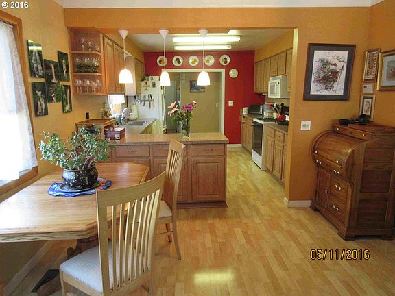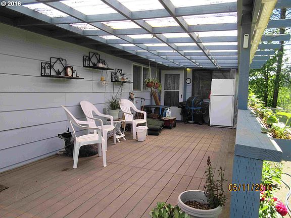 Three bedroom, 3 bath home with lots of storage! (Older home with updates in the 90's) Nice big covered deck, fenced yard, raised beds and beautiful flower gardens! Your backyard is near Vernonia Lake!