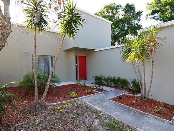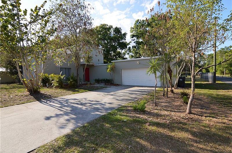 *PRICED BELOW APPRAISED VALUE!! URBAN CHIC... SUBURBAN SETTING, freshly renovated 3bed/2bath/2car home on large .46 acre corner lot with a location just minutes from city conveniences. Home features unique architectural style interior and exterior, NEW ROOF, and 2 NEW AC SYSTEMS plus a flex room that could be a 4TH BEDROOM. Throughout the home you will find recessed lighting in most rooms, 11' volume ceilings ceilings and strategic placement of skylights that bathe the interior space with natural light. The NEW GRANITE kitchen has been upgraded with NEW STAINLESS APPLIANCES, NEW LIGHTING, NEW PLUMBING FIXTURES, and new paint. Both baths have also been updated with NEW GRANITE, NEW LIGHTING AND PLUMBING FIXTURES plus new paint. Adjoining the kitchen is a dining area with a large "glass wall" that seems to bring nature indoors. Several rooms utilize oversize picture glass windows and horizon windows to introduce light and openness to the rooms. The original terrazzo floors have been restored to complete the trendy, retro, urban appeal of this home. The iron spiral staircase offers a unique contrast to the modern interior and provides access to the 13'x20' loft bedroom which has also been refreshed with NEW PAINT and NEW CARPETING. NO HOA OR CDD!! Feel free to bring your RV, boat, PWC's or ATV's to store in the secure chain link backyard. Relax in the 16'x21' screen enclosed lanai while watching pets or kids play in the shaded fenced backyard. Corner lot on paved street offers easy access to the backyard.