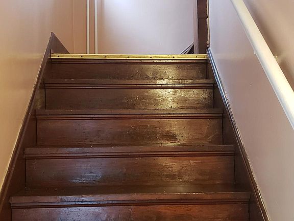 Two bedroom upstairs apartment, and living room. Kitchen has plenty of cabinet space, with balcony style porch. Washer and dryer hookups are located in the basement. There is an attic that can be used for storage. Parking is off street out back. Please feel free to contact me for additional details, and to schedule an appointment for viewing. Accepting Section 8. Water, Sewage, and Garbage