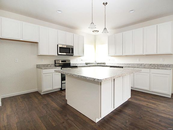 This McBride Homes’ Sequoia two story 4BR 2.5BA home will be move in ready early 2023! Perfect for entertaining, the kitchen features large square island with breakfast bar, stainless steel GE appliances, white ice granite laminate countertops, and level 4 painted white 42 inch wall cabinets! Large breakfast room with huge pantry and sliding door out to the patio area. Window wall in family room. Formal living room and dining room, plus powder room and laundry on main level. Upstairs is the master suite featuring massive walk-in closet and private master bath w/separate shower and corner tub with large window, plus three additional bedrooms and a hall bath. 6ft windows on main floor, upgraded wood laminate flooring, upgraded lighting, open spindled staircase, ¾ bath rough in at basement, and more! Fox Creek is a beautiful new construction community just minutes from Gravois Bluffs. Enjoy peace of mind with 10 year builders warranty and incredible customer service! Similar Home Photos.