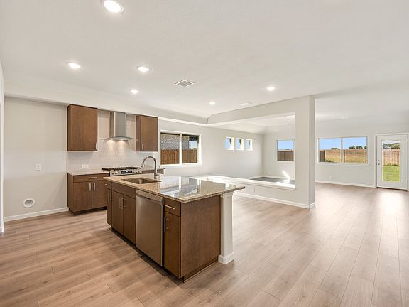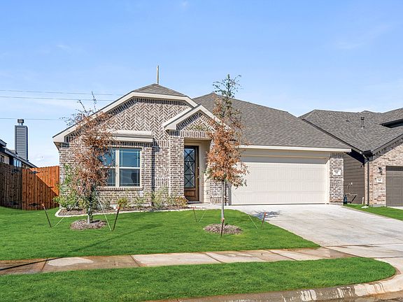 *4% Seller Credit + Quick Move-In Package (Blinds, Gutters, Washer, Dryer, Fridge)! - Contract by November 30th, 2025, see community manager for details.* NEVER LIVED NEW HOME! Move-In Ready NOW! Loved for its modern kitchen, sun-filled rooms, and spacious open-concept layout, this Redbud II from Bloomfield is a popular two-story sure to impress! Nestled on an interior lot within an amenity-filled community, the home boasts an all-brick facade and is introduced by a striking 8' front door that sets the tone for the thoughtful upgrades found throughout. The upgraded kitchen features a mix of Granite and Quartz countertops, all-gas stainless steel appliances, a sleek glass and stainless steel vent hood, and a wall of contemporary cabinetry providing ample storage. A dedicated Study enclosed with glass double doors offers a quiet retreat for work or reading, while lovely Laminate Wood floors flow through the common areas, tying the open layout together with warmth and style. The Primary Suite, along with three secondary bedrooms, is located on the main level, and the Deluxe Primary Bath impresses with dual sinks at the vanity, a garden tub, and a glass-enclosed shower. Upstairs, Bedroom 5 and Bath 3 are tucked off the large Game Room flex space, perfect for guests or multi-generational living. Additional highlights include a separate laundry room, a mud room, a built-in bench in the dining area, and a Covered Rear Patio ideal for relaxing or entertaining. A tankless water heater adds energy efficiency to this already impressive design—visit Bloomfield at Godley Ranch to learn more today!