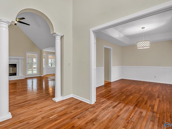 Country living on 2 Acres just 20 minutes to Madison & Huntsville! Gorgeous covered front porch. Original hardwoods in Impressive two-story entry, dining room w/French doors & living room w/ vaulted ceiling & fireplace. Laminate flooring in Eat-in kitchen w/refinished cabinets & countertops, stainless steel refrigerator & dishwasher. Large bonus room. Enjoy the serenity of the privacy fenced backyard from the enclosed back porch, sit by the pond, or work your green thumb in the potting shed & garden. There is even a well on property for irrigation/pond and storm shelter! With a 2 car attached, 2 car detached garage & storage building. Plenty of room for toys!