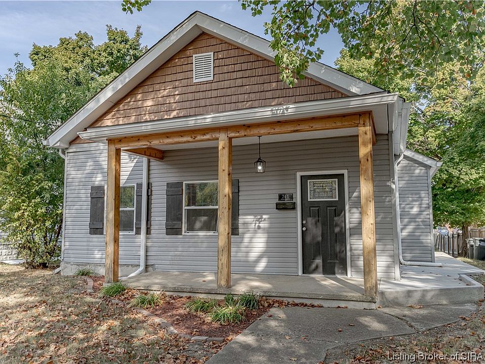 Come See this Beautiful home, just minutes from the East End Bridge! This 1523 sq ft. craftsman-style bungalow has 3 bedrooms 2 baths with fully remodeled kitchen and baths. AND featuring a concrete HANDICAP ACCESSIBLE ramp and walkway from the rear drive all the way to the front door. A feature worth over $10,000 by itself! Large back yard!! A beautiful owners suite with a HUGE bedroom and full bath! Relax in the evenings on the beautiful covered front porch with cedar posts! As soon as you step in the front door, you'll love the flow of this open-concept home! The living room connects into the open-concept dining room and the LARGE eat in kitchen that features white cabinets and custom epoxy countertops! All the stainless-steel appliances remain! The mud room/utility room is off the kitchen in the rear! The bedrooms are spacious with plenty of natural light from the large windows. The roof, siding and windows are approximately 2 years young! The HVAC is very young. New flooring and paint throughout! Grab this beautiful slice of heaven close to shopping and Indiana 62. This is the best deal in Southern Indiana! ***Currently Accepting back up offers***