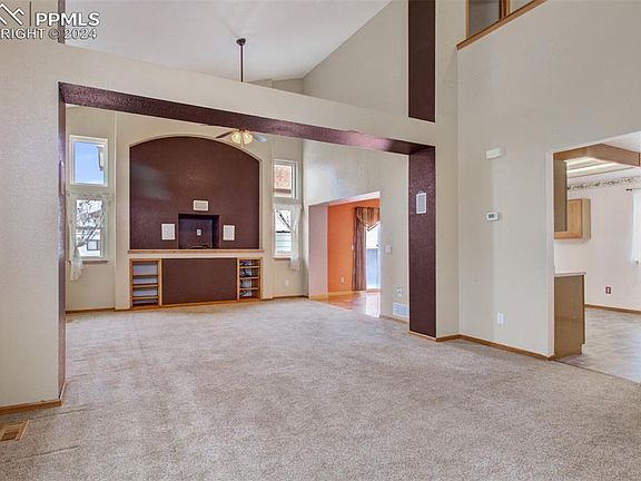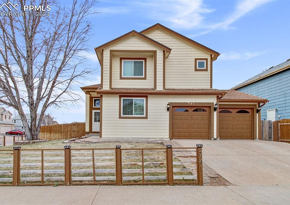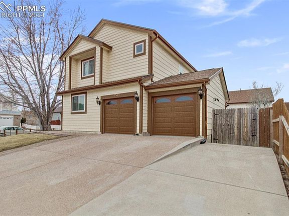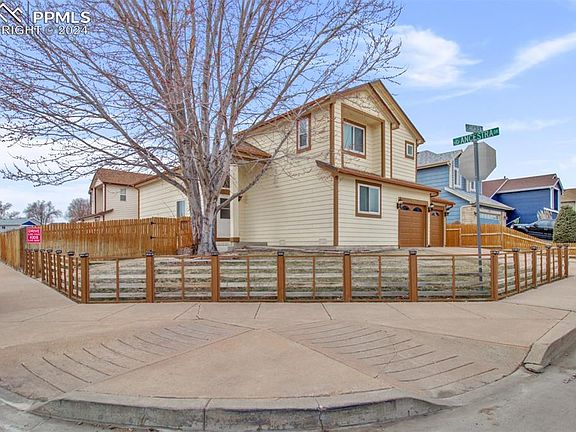 Come check out this spacious 2-story home located on a large corner lot! Step inside to the welcoming living room which has built-ins and a vaulted ceiling! The built-ins are pre-wired for a home theater which includes center and surround speakers, (fronts will need to be acquired by buyer), and a gas line is available under the area where a fireplace would be installed. The windows have been replaced with Champion Window in September 2023 and have a transferable 5 year warranty! The kitchen is had a wonderful gas range stove with double ovens, and the floor was just replaced March 2024! All other floors were replaced in 2016 and 2017. You'll find a main level bedroom, and bathroom, with 3 more bedrooms, and 2 more bathrooms located upstairs, and there is a 2 car garage. The basement is unfinished ready for you to finish to your liking by adding yet another bedroom and bathroom, a family room, a theater room, anything you wish! Conveniently located near Fort Carson, not far from Peterson Air Force Base, minutes away from grocery stores, restaurants and schools! Come and take a look!