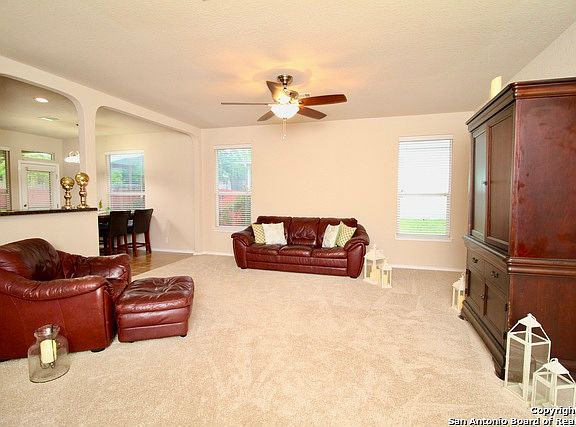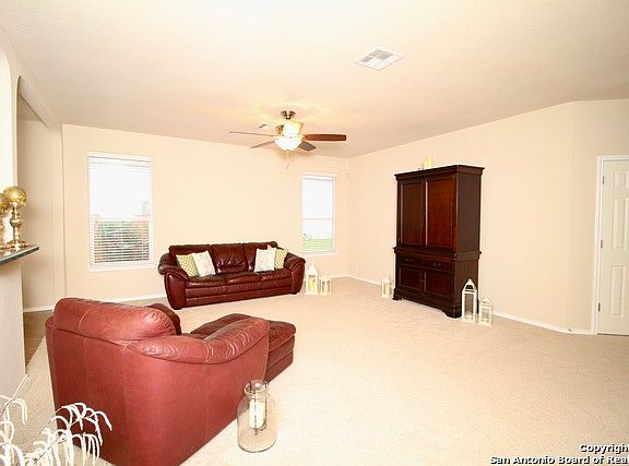 Beautiful 3 bedroom home! Come take a look at this beautiful move-in ready home in Schertz TX! Home features a Large Kitchen w/ Custom Cabinets, and Island, Open Living Area, New Carpet in living and all bedrooms, new neutral color fresh paint throughout, Large Master Bedroom with full bath, Garden Tub, and Separate Shower. Sizable Back Yard and Covered Patio great for entertaining. Extras include solar screens, gutters, 9 ft. ceilings and mature trees. Convenient to IH 35, Shopping Centers, Movie Theaters and minutes away from Randolph AFB and Fort Sam Houston.