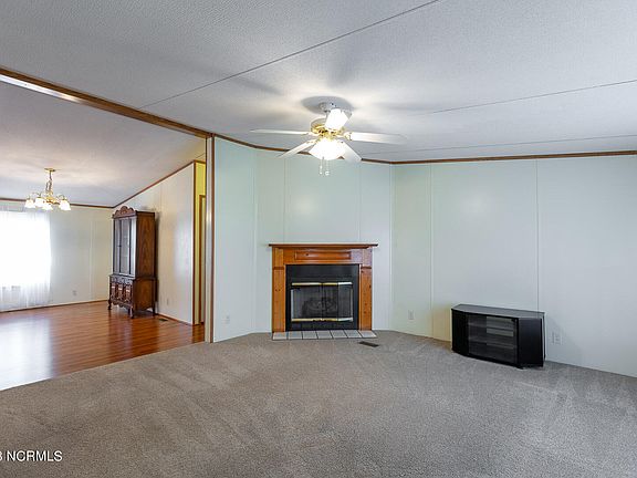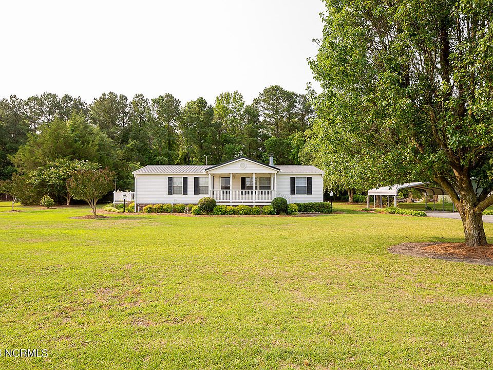 This 3 bedroom and 2 bath home is meticulously maintained and ready to move in! Open family room features fireplace with gas logs. Kitchen features great counter space, new dishwasher ('21), new refrigerator (22), chest freezer, great storage, breakfast area and dining area. Master suite features walk in closet, garden tub and walk in shower. Separate laundry room with new washer/dryer. Covered rocking chair front porch. Side deck ideal for grilling and entertaining and overlooks beautifully landscaped and manicured 1 acre lawn. Asphalt driveway and carport. Metal roof. 2 wired storage sheds one with covered shelter on the back. New laminate in 2017, new gutters 2023.