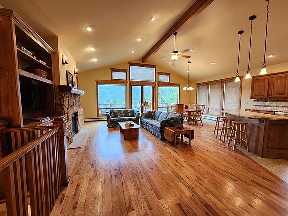 Welcome home! Amazing view of the Continental Divide from the large windows in the living room, with a private deck. Perfect for entertaining or simply sipping coffee. Located on the road adjacent to the entry to RMNP. This modern single family home has so much to offer. Large rooms, bedrooms and closets for so much space to enjoy. Granite countertops, hardwood flooring and ambiance lighting make this home immediately inviting and move in ready. All on one level with NO steps for ease on the knees! Attached heated 2 car garage to round out the comfort and keeping the car cozy over winter too! The ensuite bathroom in the primary bedroom is posh for 2. Double sinks and the toilet in a separate room for total privacy. Primary bedroom is located on the other side of the home for quiet when the other side is being noisy! Loads of storage space inside and out. Whole home vacuum system as well. Ready for immediate move in to enjoy the fall colors and change of the seasons here in Estes Park! 1 year lease Utilities are tenant responsibility Snow/trash removal are tenants responsibility No mail will be received at the property, packages ok, inquire with Management about mail Garage has an apartment above, no access to this home from the apartment 3 vehicles maximum