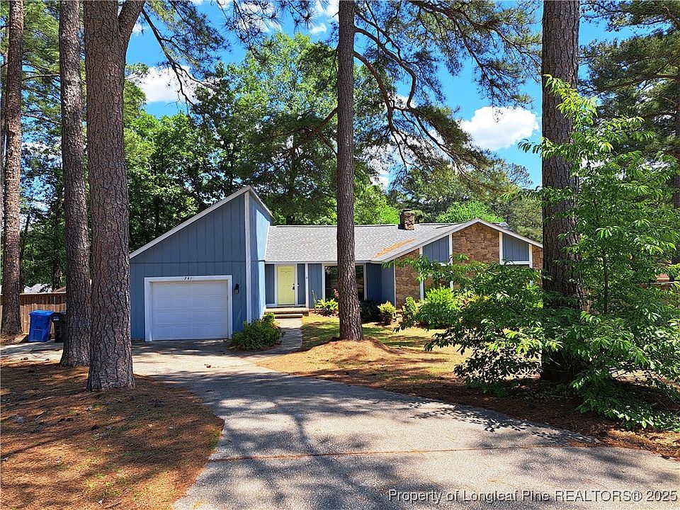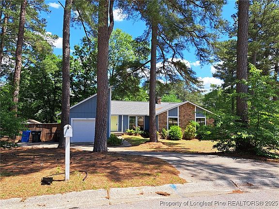 AVAILABLE NOW! Welcome to your new home nestled in a prime location just moments away from Fort Liberty, restaurants and stores. This one-level 3 bed / 2 bath house offers easy access to all the amenities the city has to offer. Relax in the inviting and spacious living room boasting vaulted ceilings and a cozy wood-burning fireplace. Adjacent to the living area, the dining room offers a welcoming space for meals with family and friends. The well-appointed kitchen features a small breakfast nook, built-in desk niche and a pantry, providing plenty of storage and functionality. Large back deck provides shaded outdoor living space. Fenced yard with storage shed. Keep your vehicle secure in the one-car garage, providing convenience and peace of mind. Pets upon approval!