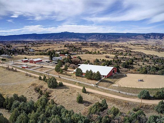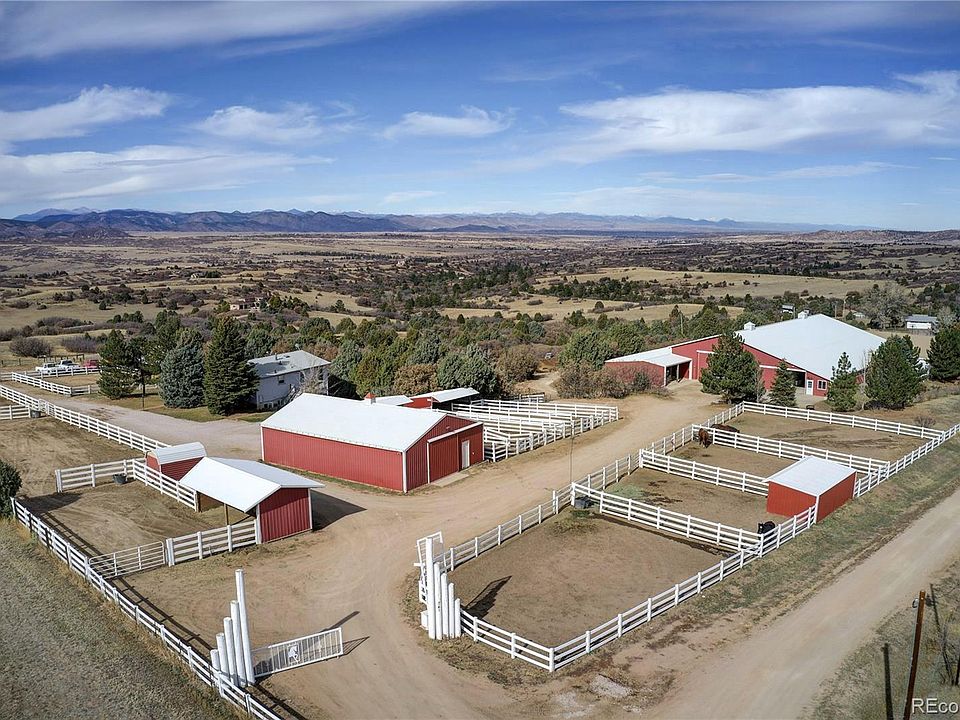 Welcome to this gorgeous 20-acre equestrian property overlooking the foothills of Castle Rock and Sedalia. Here the sky seems closer, the sun a bit brighter, and the air crisp and clean. Here you’ll experience the authentic Colorado lifestyle, a Rocky Mountain High – striving for a balance between work and play, old and new, recreation and relaxation. Laugh more, dream big, count the stars; go ahead and create memories you’ll cherish for years to come. You, your family and friends will fall in love with all the amenities in this all-in-one horse facility – in colder months enjoy the amazing indoor arena lined on two sides with 9 total stalls (4 with attached runs, 1 double foaling stall, auto waterers and rubber mats), wash rack, tack rooms, feed room and a huge storage/hay shed! During the warmer months, head out to the 140x145 ft. massive outdoor arena filled with premium footing. Or enjoy a hillside ride among the shrub oak, soak in the sun and delight in the spectacular foothill views in every direction. Your horses will thank you for all their outdoor living and turnout accommodations too, with 8 loafing sheds, multiple paddocks, and fenced native grassland pastures. An attractive 2,000 sq. ft. walk-out ranch features 2 separate living quarters with separate entrances. Each level has a full kitchen, living room, 2 bedrooms and a full bathroom. Live in one and rent out the other! A huge, heated workshop (32 x 48) provides additional work/play opportunities. Plus, adjudicated water rights, no HOA and end of road privacy! Dream big -- bring your toys, cars, RV's, animals and just move in and enjoy! This jewel offers a rural lifestyle without the distance between you and city amenities. Dining, shopping, schools, and medical all within a 10-minute drive.