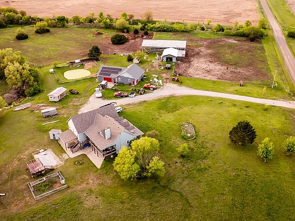 If you have been looking for a country home on acreage and a place to plant your roots down and enjoy rural living this one deserves your attention! Located just 6 miles southwest of Belle Plaine, KS this property offers the perfect blend of rural seclusion and close proximity to nearby towns Belle Plaine and Wellington and is only 30 minutes from Wichita. The home, built in 2006, consists of 4 bedrooms and 3.5 bathrooms and a 2 car attached garage. The main floor has a large master suite with a massive walk in shower and jacuzzi tub. The kitchen is spacious and has a farmhouse sink, gas stove, and a big island with lots of storage space. The living room features a gas fireplace, a vaulted ceiling that makes the area feel spacious and walks out to the back deck which is a perfect spot to watch incredible Kansas sunsets. The walk out basement has been finished under the current owners ownership and includes 2 bedrooms, 1 full bathroom, large living area, and a mechanical room with a storm shelter. An extra bedroom could be added downstairs if desired. Other amenities include a natural gas backup generator, solar panels which will stay, and a hot tub. Outside you will find a 35x60 shop building which is insulated, heated and cooled and has a full bathroom. Store your toys here or get work done in a climate controlled environment. Other outbuildings include a 40x80 barn and a 24x30 barn with a 12x30 lean-to. There is a nice fenced pen area around the barns for your hobby animals to stay secure and roam around. The 34 +/- acres of land are well kept and has a bunch to offer. The acreage is made up of primarily clean native grass and features a spring fed pond that is stocked with fish, and a drainage creek that is lined with trees. For those that enjoy hunting this land will provide countless opportunities to chase Deer, Turkey, and Upland Birds right from your backyard. Don't miss out on the opportunity to own this excellent property that has so much to offer! For questions or to schedule a time to view the property contact the listing agent.