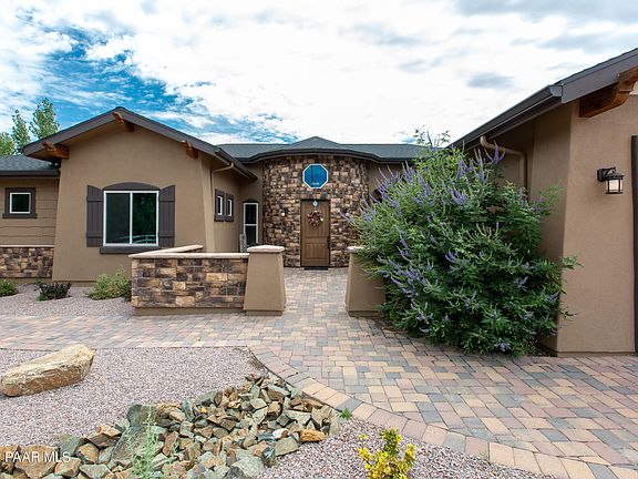 Welcome Home! As you drive up your charming pavers' driveway, you will immediately notice the custom features galore. Take the extensive professionally landscaped front yard w/ plum and maple trees, timed drip irrigation system, quaint pvc fence w/ gate in front yard, for starters. Park your car in the attached 3-car garage to begin your tour. Enjoy the fragrance of your lavendar shrub as you walk out to your elegant courtyard. The stunning semi-circle stone entry, octagon window, and custom wood door will arrest your attention to be sure. Once inside, you'll enjoy the ample space yet still feel homey w/ the thoughtful layout of this home. Wood columns greet you, then 8' doors throughout, ceiling fans in living & bedrooms, 17' pitched ceiling, custom black-out shades & blinds, decorating