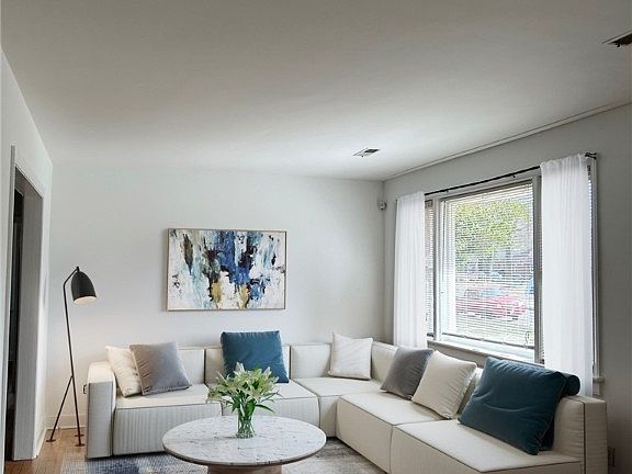 Welcome home! This Brick home has been virtually staged for your viewing pleasure. Move in ready - 1st Floor living, with two bedrooms, one bathroom, living room, dining room, kitchen, sun room and laundry room. House has been professionally painted and the hardwood floors have been professionally refinished. Roof, Gutters, and electric range are two (2) years young; and HVAC is less than five (5) years. New gas Water Heater was installed in 2023, along with new bathroom cabinet. The backyard is partially fenced, very spacious and contains a shed that has been refloored. Welcome Home!