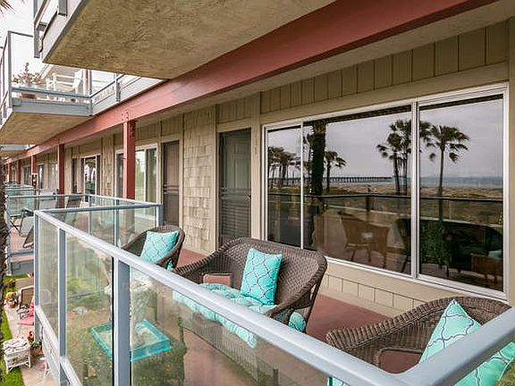 2nd floor OCEANFRONT condo with forever panoramic whitewater, island & sunset views! Even on an overcast day, the view is fabulous at Surfside 2! Condo is clean and could be upgraded to your taste. The large windows front and back are dual-pane Milgard Low E for coolness and quietness. Bedroom is huge. Includes fridge, washer & dryer. Entire complex has had new plumbing. There's a shared garage, common-area pool large enough to swim laps, and a newly refurbished spa, plus a rec room and BBQ to enjoy. This one bedroom, one bath condo is PERFECT if you want to live and work from home and enjoy the beach lifestyle. It's also a PERFECT weekend getaway from anywhere HOT or BUSY! The complex is small & the HOA dues are reasonable and include water and trash. Anywhere else in SoCal, you'd pay double. Port Hueneme is the last quintessential SoCal beach town.Wake up every day to surf, seagulls, sand & Channel Island views. Take a short walk to the Port Hueneme harbor entrance and watch the freighters deliver their cargo, activity at the port shipping yard, surfers, sailing, & you can even fish from the pier. Return to your condo-by-the-sea and relax or work at your computer facing the ocean. At the end of the day, enjoy the sunset.