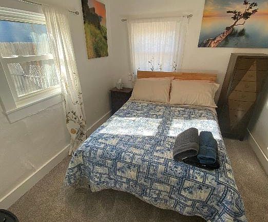 FURNISHED. DOGS WELCOME. Cozy bungalow with a huge fenced yard and a Denver address. Steps from Lakewood Gulch Trail and the Perry Lightrail Station for easy access to downtown. Fresh white paint, new stove, dishwasher and microwave, thoughtful touches throughout. Laundry in-unit. Windows on all sides make this adorable little house light up in the Denver sunshine. Master bedroom has a full size bed with open-style closet and built-in shelves with an adorable barn door. Second bedroom has a twin size bed, could be moved out to turn second bedroom into an office. Kitchen has gas stove and oven, full size refrigerator, stainless steel double sink, dishwasher and microwave. Enormous yard is fully fenced and ready for your furry friends. Backyard also has a fire pit and storage shed for your use. Bikeable to Sloan's Lake and the Edgewater shopping center with restaurants and shops. Easy access to highways and on a quiet street with minimal traffic. Price includes internet and trash, tenant to put heat and water in their name. Must be willing to sign a 12-month lease but may be flexible to your needs. Owner has lived on site and will be local in Colorado upon relocation. Owner pays for trash and internet, tenant to put Xcel energy and Denver Water bills into their name. First month's rent and 1-month refundable deposit due at signing. Absolutely no smoking inside the house. Dogs allowed, no cats please. Lot contains extensive parking, you could park your full-size RV in the yard at no additional charge. Driveway has room for 2 vehicles off-street and there is ample street parking as well. Owner may occasionally have a vehicle stored on site but will be communicative and respectful.