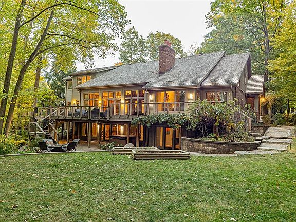 An oasis of privacy awaits. Front Entry w/double doors & leaded glass commands your attention. Fine craftsmanship throughout. Custom molding, paneled library, fluted columns, coffered dining rm ceiling & more. Kitchen, living room & main floor owner's retreat spills out to expansive deck overlooking Williams Creek. Oversized culinary kitchen exudes clean lines & sleek design. Appliances of the highest quality incl. Bosch, Gaggenau & Wolf. Spacious LL walk out w/ fireplace, bar, billiard & exercise rooms lends itself to casual living. Add'l BR, with access to lovely patios, hot tub & fire pit, overlooks a naturalistic setting. Trails through wooded acreage take you to the creek bed & tree house beyond. This property is a rare find!