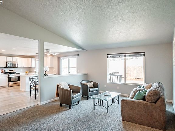 Single level, with new paint, flooring, quartz better than new construction! Nice size bedrooms. Primary suite set in back of home. Vaulted living space open to kitchen & dining. Kitchen hosts quartz eat-in bar, SS appliances. Indoor laundry room, tucked just off kitchen. Backyard with large deck for entertaining, fully fenced, overlooking natural setting!