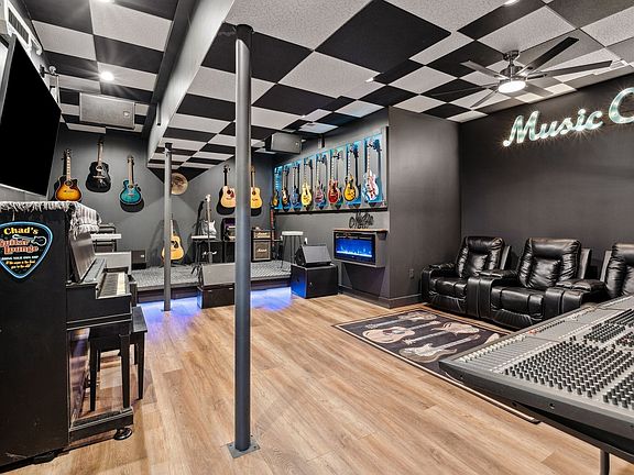 Stunning 6889 Sq Ft Residence with Recording Studio & In-Law Suite Potential! This magnificent 5-bedroom, 5 full bath, 3 half bath estate spans 1.09 acres, blending luxury, comfort, and functionality. The gourmet kitchen boasts quartz countertops, a gas cooktop, double ovens, a microwave, a disposal, and a spacious walk-in butler’s pantry with granite. The primary suite is a serene retreat featuring double sinks, a separate tub, and a walk-in shower, while guest bedrooms offer walk-in showers and tub/shower combos. A professional recording studio makes this home ideal for musicians, podcasters, or audio professionals. The basement provides in-law suite potential with a plumbed kitchen area and 220V for an oven. Climate control includes gas HVAC, two water heaters (tankless), and mini-split units in the garage, bonus room, and adjacent spaces. The insulated garage features its own mini-split unit for heating and cooling.An additional garage/workshop with an insulated door and 220V power access caters to hobbyists and mechanics. Luxury finishes such as LVP flooring, granite countertops, and custom details are found throughout the home. The friend’s entry and laundry room have charming brick flooring for added character. The exterior showcases Hardie board siding, a metal and shingle roof, and gas exterior lighting for a welcoming, low-maintenance environment. Two natural gas fireplaces in the great room and outdoor patio enhance warmth and ambiance. Offering modern convenience, upscale finishes, and versatile design, this residence is perfect for multi-generational living, entertaining, or creating professional recordings. Contact Spouses Selling Houses today to schedule your private tour!