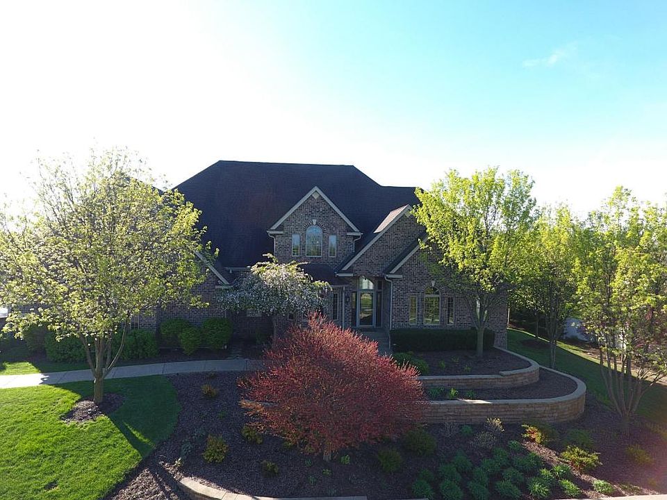 This remarkable 5BR 4.5BA custom built home sits on a beautifully landscaped 1 acre wooded lot. Interior boasts a grand staircase, both hardwood & ceramic tile flooring, huge open concept chef's kitchen and fireplaces. Master Suite has a custom bath w/walk in shower. All bedrooms feature walk in closets. The lower level adds multiple tiled living areas and a sport basketball court. The home's exterior has an expansive patio, mature trees & a boulder wall fire pit. The heated garage has 3+ stalls with epoxy finish & a staircase that leads to the lower level.