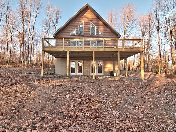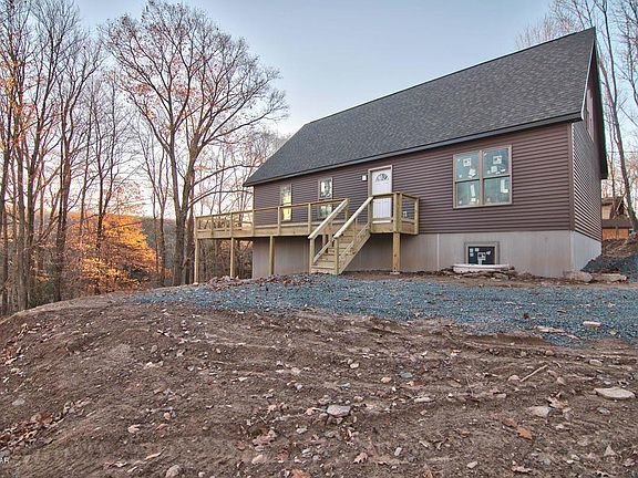 New construction chalet with Wallenpaupack River views, located in Indian Rocks community. Home features 3BD, 3BA, finished basement, open floor plan, stainless steel appliances, hickory hardwood floors, oak railing system w/ wrought iron spindles, ash wood trim,custom built live edge slab island countertop, master suite, loft, low maintenance siding, large deck overlooking the water. Indian Rocks community amenities include Lake Wallenpaupack beaches w/ waiting list for boat slip, boat launch access, outdoor pool, club house, golf cart/ATV friendly, garbage, security and road maintenance. Easy access from interstate.