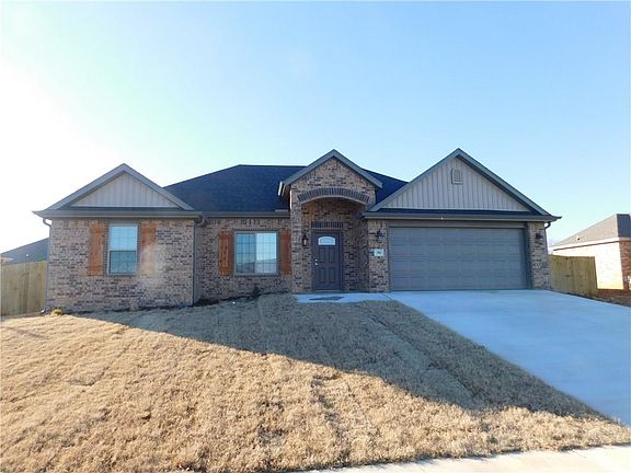 Prairie Grove. New brick home, 1460 SF, 3/2/2, granite tops, huge walk-in shower, pantry, gas fireplace, split plan, faux wood, blinds, large covered patio. Fenced backyard. Builder will pay up to $2800 of buyers closing cost and prepaids.