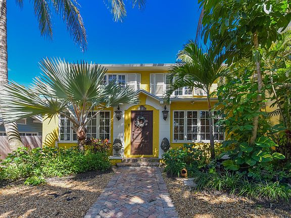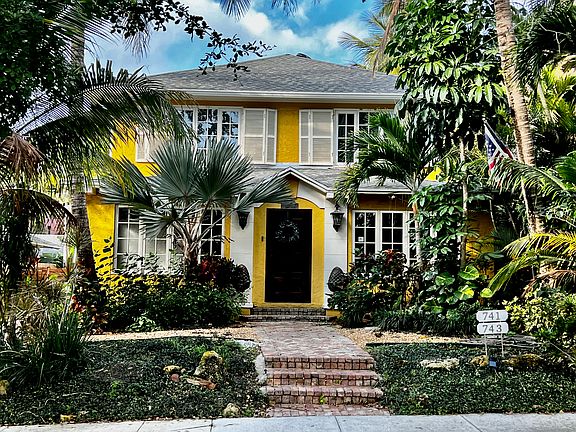 Welcome to this fabulous family home! Charming landmarked home in historic Flamingo Park with tropical pool and hot tub, garage and guest cottage. High elevation and fantastic location in Palm Beach Public school district. Convenient to Rosemary Square, Howard Park, Armory Art Center, Grandview Public Market, I-95, PBI and so much more. 3 BR main house is 2405 sf under air with 2022 roof, 2021 designer kitchen, and beautiful primary suite with walk in closet and modern bathroom. Two story guest cottage is 840 sf under air with spacious living room, kitchenette and its own laundry; is zoned separately and can be rented legally. Seller will leave roof solar panels which assist pool heater and main house electricity. See Documents section for Features list.