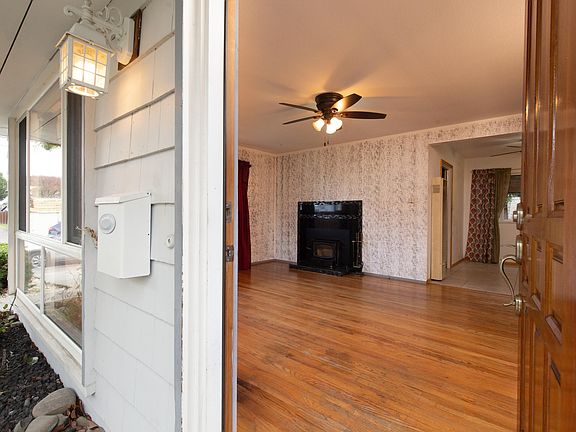 Classic 3 bedroom mid century home. Desirable upgrades include a remodeled kitchen with custom tiles and cherry cabinets, Oak floors, fireplace, vinyl windows, and a bonus room. Lots of storage throughout and a sunny south facing yard with and shed and room for animals and a garden. Sellers will offer a credit towards a new roof and are working on a pest clearance. This home is ready!