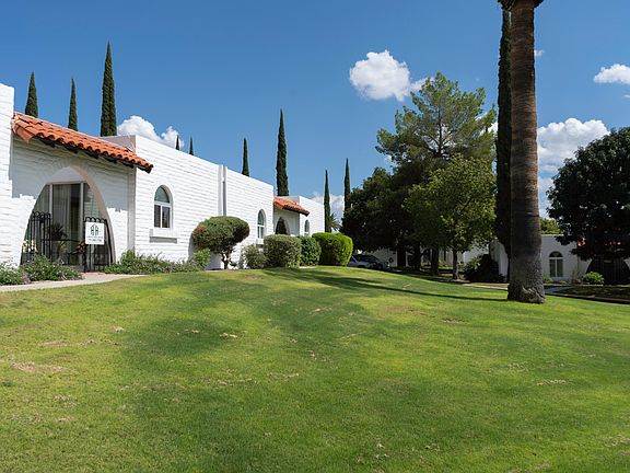 GORGEOUS, VERY CHARMING MASONRY BUILT SINGLE LEVEL 2 BR/ 2 BA IN HISTORIC CASITAS DE CASTILIAN, A VERY SPECIAL OVER 55 COMMUNITY DESIGNED BY RENOWNED ARCHITECT BENNIE GONZALES SITTING ON 17 ACRES OF LUSH COMMON AREA! HM BOASTS A PERFECT POSITION IN COMMUNITY ON AN ELEVATED LOT, A LIGHT, BRIGHT & CHEERFUL FLOORPLAN W/ REAL WOOD FLOORS, MAGNIFICENT FIREPLACE, CEILING FANS & SKYLIGHTS, WALK-IN CLOSETS, TRIPLE PANED DOORS/ WINDOWS, AUTOMATIC AWNINGS ON FRONT & BACK PATIOS PLUS A LOVELY, VERY PRIVATE BACK YARD W/ CARPORT (#77) JUST STEPS AWAY. HOA FEE COVERS WATER, GARBAGE PICK-UP, BLANKET INSURANCE POLICY, MAINTENANCE OF BUILDINGS, GROUNDS & STREETS. ENJOY THE CLUBHOUSE, TENNIS, TWO HEATED POOLS & MATURE FRUIT TREES. WONDERFUL COMMUNITY CLOSE TO EVERYTHING! 2 PETS ALLOWED (ONE DOG ONLY.)