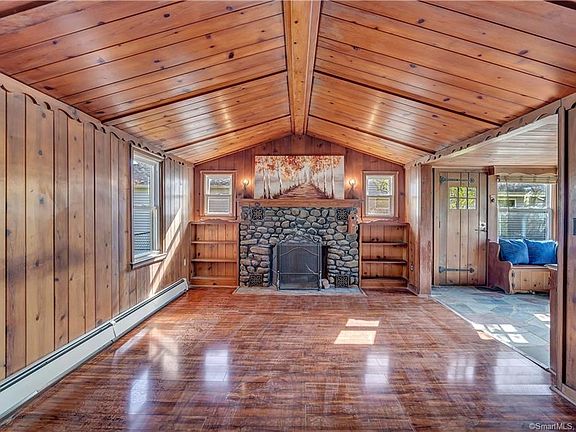 Direct Waterfront on Lake Phipps And No Flood Insurance! If peace and tranquility are what you are looking for, than this charming 2 Bedroom log home is perfect as a year round home or weekend retreat. Youll be welcomed by a stone wall and stairway leading to an inviting enclosed front porch and spacious Living Room with cathedral ceiling, wood burning stone fireplace, and separate built-in Dining Area offering breath taking views of Lake Phipps. The Eat-in Kitchen includes a brand new stainless oven/range and refrigerator and plenty of room for a cozy eating area. Two bedrooms and a full bath complete the main level. Access from the dining area to the meandering yard that leads to the lake for relaxing, fishing, or just reading a book. Freshly painted and move-in ready. Expansion possibilities are endless! New furnace/boiler and water heater. Close to Metro North train, West Haven Green, and beautiful sandy beaches. A one of a kind must see!