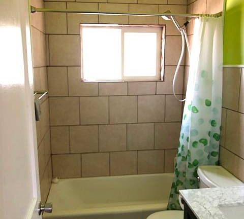 Stuccoed home with 2 bedrooms and 1 bath. Tile floors, new windows, electric fireplace, new doors, new blinds, new LED lighting, new cabinets and toilet in bathroom, freshly painted inside and additional 6" insulation in ceiling. Yard is fenced, corner lot and nicely landscaped.