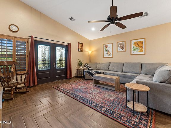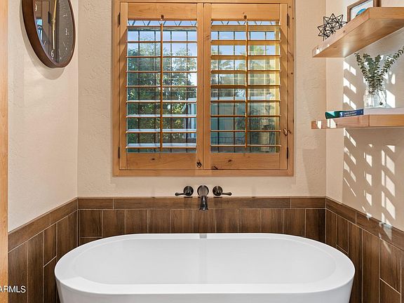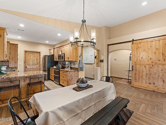 Exquisite home in the Historic Barnette Addition in the highly sought community of Wickenburg, AZ! Custom features abound in this home, including color-matched knotty alder cabinets, shelving, doors and plantation shutters. Wood look tile with a Chevron pattern throughout gives a modern yet soft touch to complement the rest of the homes upgrades. Unique tile work has been incorporated in all of the bathrooms as well as the kitchen back splash to provide cohesion with the design. The garden may be the most unique feature this home boasts, you really have to see it to believe it! 100% auto watered with exotic plant species which include multiple citrus trees and other fruit bearing trees and plants! See Features List!!
