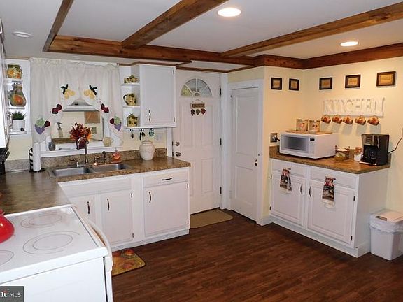 Enjoy the country views, everyday! This home is nestled on two acres of land that you could all be yours. The home features a bright living room with new carpet, and spacious dining room with cozy, wood burning stove and hardwood floors. The kitchen has been just updated and also offers hardwood floors, exposed beams, and recessed lighting. Study area provides a great office space, or make it a craft room, music room, or whatever suits your needs! Master bedroom is on the main floor with brand NEW carpets and walk in closet, and doors that open to the deck! Two additional nice sized bedrooms, all with neutral paint and carpeting. Outside buildings for storage and parking; detached garage, carport, and shed. Make your appointment today!