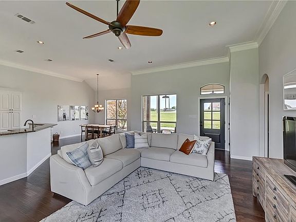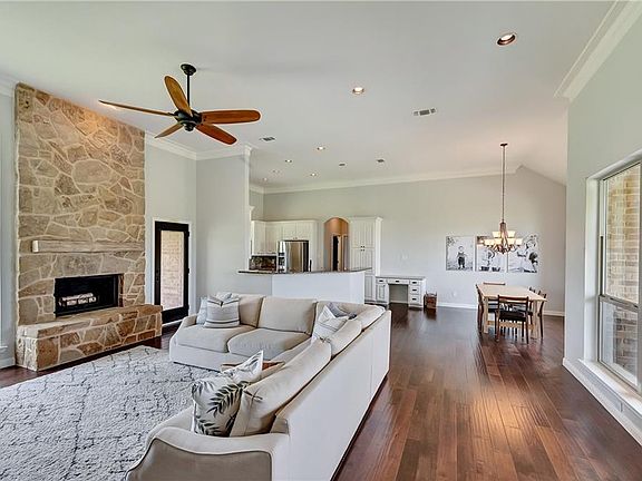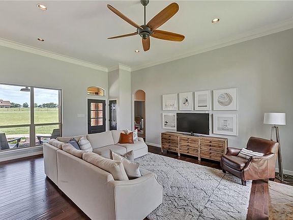 Amazing custom home in Zion Estates within Northwest ISD. This home sits on 5.41 acres with beautiful mature trees and plenty of room to create your outdoor oasis. Inside boast 12ft ceilings, open floor plan, wood flooring, wood burning stone fireplace. Kitchen has granite counter-tops, lots of cabinets and counter space, kitchen island, SS appliances. Split bedrooms, large master bath with walk in double shower, and a huge master closet with built-ins.